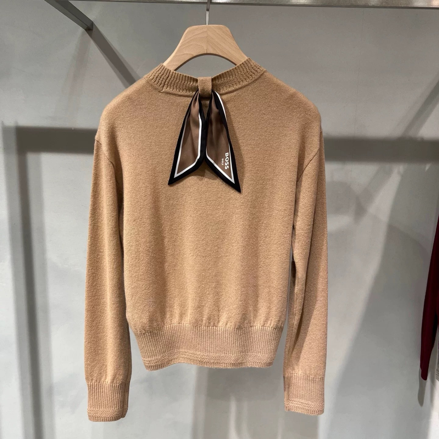 The round neck design is simple and elegant, and the small logo on the chest is low-key and recognizable