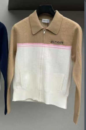 H5038 # (expected to be shipped on August 22nd) New Golf Women's Top for early autumn, made of a blend of cotton and 50% sheep wool. The upper body fits the body shape with elasticity, and the touch is soft and dense. The lapel is spliced with zipper and sports knit cardigan