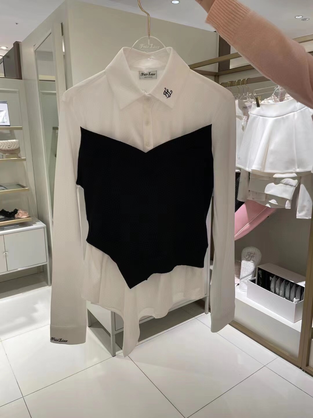 The new spring women's knitted patchwork long sleeved polo shirt features an irregular hem cut, highlighting an elegant and versatile spring shirt!
